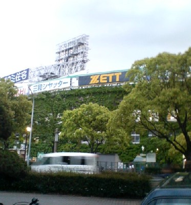 やってくれましたね~~♪昨日は甲子園近辺で仕事でした。早めに着いたので、駐車場に車を停めて、窓をあけて、カーラジオをきいていました。うーーーん!!!臨場感ばっちり!!!カーラジオからは試合の行方が聞こえて、窓の外からは歓声が聞こえて、最高でした!!一段と大きな歓声が聞こえた時、赤星選手がホームベースに帰って来た時でした♪仕事の時間になったので、車を降りて職場へ向かう途中でパチリ。活気のある空でしたよ~~~~!!!(*⌒▽⌒*)仕事が終わって車に乗り込んでカーラジオをつけると、勝ってるし!!!!!!!!!!ヤン♪q(^-^*q)(p*^-^)p ヤン♪おまけに後1球!コールの最中でした。車をスタートし始めて数分、空でピュ~~~~~~と言う風船の音。(爆)おぉ!!!!勝った勝った!!!と思った瞬間、風向きでわたしの車の方に風船が沢山落ちて来ました。ポンポンポン!!!。。。と、5つくらい風船をつぶしちゃいました。前の車の後部には、割れた風船のかけらがくっついたままでした。(爆)ご機嫌さんで高速飛ばして帰り、車の中でヒーローインタビューを聞きました♪♪♪あぁぁ~~~すかっとした1日です♪この調子で頑張って欲しいです~~~~~~!