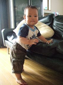いー坊は最近毎日タッチの練習・・・・まだハイハイもできないのにつかまり立ちしては両手を離す もちろん立ってられないのでそのままドスン。運が悪いと頭を強打。「うぇーん!!」と泣くもののすぐにまたつかまり立ち→ドスン の繰り返し。ドアが開いてるすきに玄関に突進していってくつを投げて自分も玄関の下に落下・・・ 階段を登ろうとして顎を強打。ゴンひょんが落としたバンソウコウを食べてのどに詰まらせてオエエエエエ お姉ちゃんにちょっかいを出して顔に足蹴りをくらい、殴り返してお姉ちゃん号泣。といった毎日なのです・・・末恐ろしいんですが 大きな怪我をしてないのは奇跡です。なぜに兄弟でこうも性格が違うんでしょうか? 踏み切りすら怖くてわたれない超怖がり娘に顔面すりむいて血だらけになってもニヤっと笑う息子。怖すぎます(笑