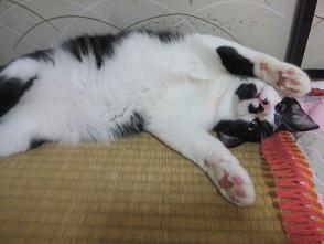 ある朝目覚めて横を見ると・・・グレちゃんが・・・私の横で寝てたんですが(^_^;)なんですか!この格好!私の方に足を向けて大股開いて(^_^;)し、失礼な(笑)アトム君は、枕の上でちゃんと私の方を向いて寝てました下の写真を友だちに見せたら「おやじみたい」って言われてしまいましたまだ1歳になってないのにぃ。一応まだ子供ですすっかり「ちょいデブ」になってしまったアトム君です・・・&「ちょい悪」のグレです(笑)