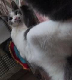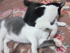 アトム君は投薬が終わったとたん(3日目で)また血便しちゃいました動物病院は、やはり獣医さんの足の怪我で閉まってました私は仕事で行けなかったので、旦那に行ってきてもらったのですが、また前回と同じ薬の処方でしたこれってどうなの????ただ、抗生剤を飲ませるしかないのでしょうか・・・・原因不明なので余計心配ですあんまり心配させないでよぉ~アトム君猫にもストレスがあるといいますが・・・アトム君はとてもデリケート(神経質)で小心者なんです。特に「音」に敏感窓を開けると、風や物音にビクビクしてます。。。最近はまるでお母さんのように、グレちゃんをなめてあげてる優しい性格なんですよねそれに比べて・・・グレちゃんははぁ~ますます凶暴になってますアトムがマイルドなら、グレはワイルドワイルドだろでも無邪気な寝顔を見ると憎めない性格は正反対でも仲良し