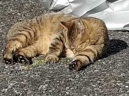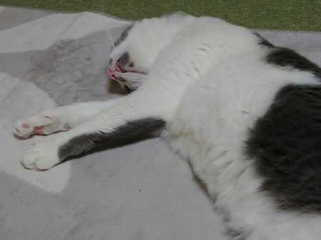ふと見たら、アトム君が面白いかっこで固まってました(笑)体操してるのかな?!グレちゃん、むくっと起き上がり何かアトム君のオーラを感じたか?本当に面白いポーズのアトム君です気持ちよさそう本来の寝姿 ソーシャルディスタンス⇔普通に寝てるようで・・・グレちゃんの頭の角度が面白い不自然なの(笑)(の写真と比べてみてください)ニャンズの寝姿ウオッチングは楽しいです年末年始も夜ウオーキングやってましたよ~テッチャンミーちゃんミストちゃんとチビゴロちゃんは車の下ここの駐車場は街灯が無いので暗いんです。。。。君はだれ? エサちょーだいってニャーニャーなく子??