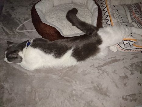 なんで片足だけベッドに入れてるのかなぁ(笑)
