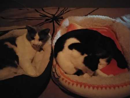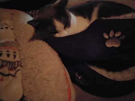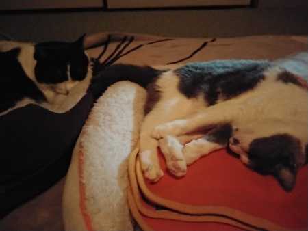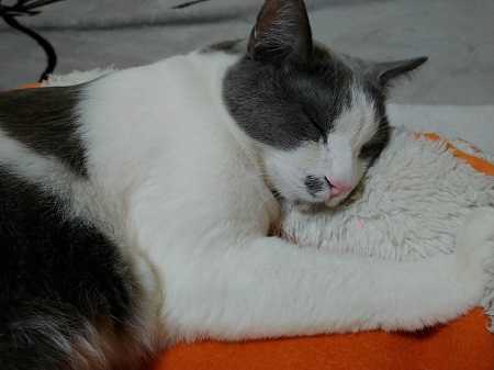 アトム君、すごく端っこで寝ててスペースが開いてるびっくり