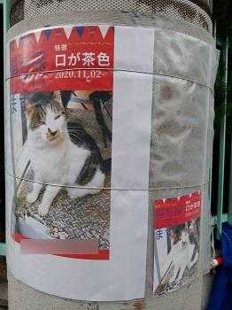 電柱にオニギリちゃんの「捜索」ポスター