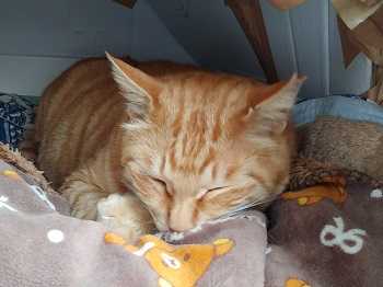 きなこちゃん、作ってもらった暖かそうなお家で寝てました