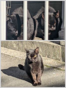 飼い猫の面白写真 &ウオーキング中に見かけた花と猫