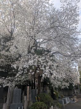 お寺の参道に枝垂桜がほぼ満開になりたくさんの人が来てました