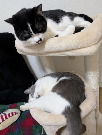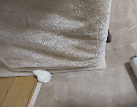 絨毯にコロコロしてたら、じゃれようとお手々を出しました(笑)