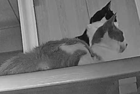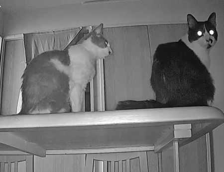 2ニャンでずっと玄関の方を見てるんです(見守りカメラより)
