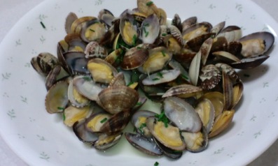 夕飯時に、スーパーで、アサリの特売発見!!→すかさず購入(笑)酒蒸しにしようかな~と思ったけど、クックパッドでレシピ確認して…って思ってたら美味しそうなレシピ発見しました。LeoRyuさん 漁師のおかず★あさりのバター蒸し レシピID :769351ネギがなかったから、庭にあるチャイブを夫に切ってきてもらい入れました。簡単、お手軽でした。1号は、この味が気にいったと言っていました。3号は、味付けは美味しいけど、あさりにうまみがない気がする。というので、行きつけスーパーが特売の時に買って、作ってみようということになりました。