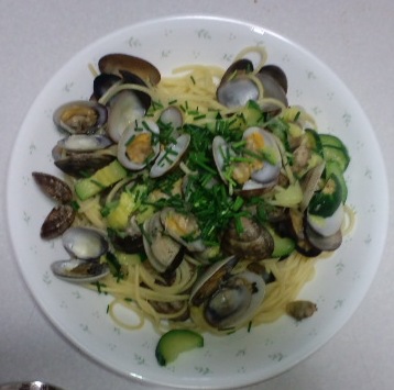 クックさんでみつけたアサリバター蒸しレシピ769351が、とっても美味しかったので、パスタに入れても間違いない!と思って、今日のランチに作ってみました。ズッキーニを入れるとさらに美味しいかもと、天からのお告げがあったので(笑)、フライパンで熱して、アサリがだいたい開いたところで、ズッキーニを投入しました。そして、パスタが茹で上がったところに、オリーブオイルを少量入れて、混ぜておきます。全体に混ざったら、あさりとズッキーニが入っているフライパンの中に入れて、かるく絡めて、お皿に盛りつけます。盛りつける時に、チャイブとか小口切りのネギ等をのせて、完成です。天のお告げ通り、ズッキーニが旨味を吸収して、超美味しかった飲み会のおつまみで出す時は、パスタは入れずに、あさりとズッキーニ、チャイブだけにして、横にバゲットを添えてみようかと思います。これも、美味しそうだから、近々やってみた~い。と思っています。