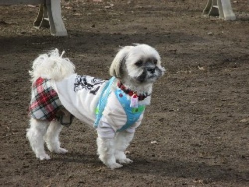 1月4日。伊豆に行きました。行きがけに、足柄サービスエリアのドッグランに寄りました。シーズーちゃんは、走りません。仁王立ちしてます。それから、何故だか、怒って吠え出します。がうがうがう。しばらく、吠えると。ドッグランに居る、知らない人達の所に、トテチテと歩いて行きます。小さくて、ラブリーなのでね。皆様、「かわいい☆」と、撫で撫でしてくれます。シーズーちゃんは、撫でられても。尻尾を振るでもなく、愛想を撒くでもなく。ボーッとしてます。ひとしきり、撫でられると。違う人の所へ、ヨタヨタ歩いて行き。「かわいい☆」と撫でられ。なんて事を、延々と繰り返してました。人懐こいんだか、懐こくないんだか。よく分りません。犬より人が、好きみたいです。野良犬風味満載な、先住犬。服も首輪も、身に付けてなかったら。足柄山に住み着く、野犬にしか見えん。ノリノリで走り回る、先住犬。知らん顔プイな、シーズーちゃん。