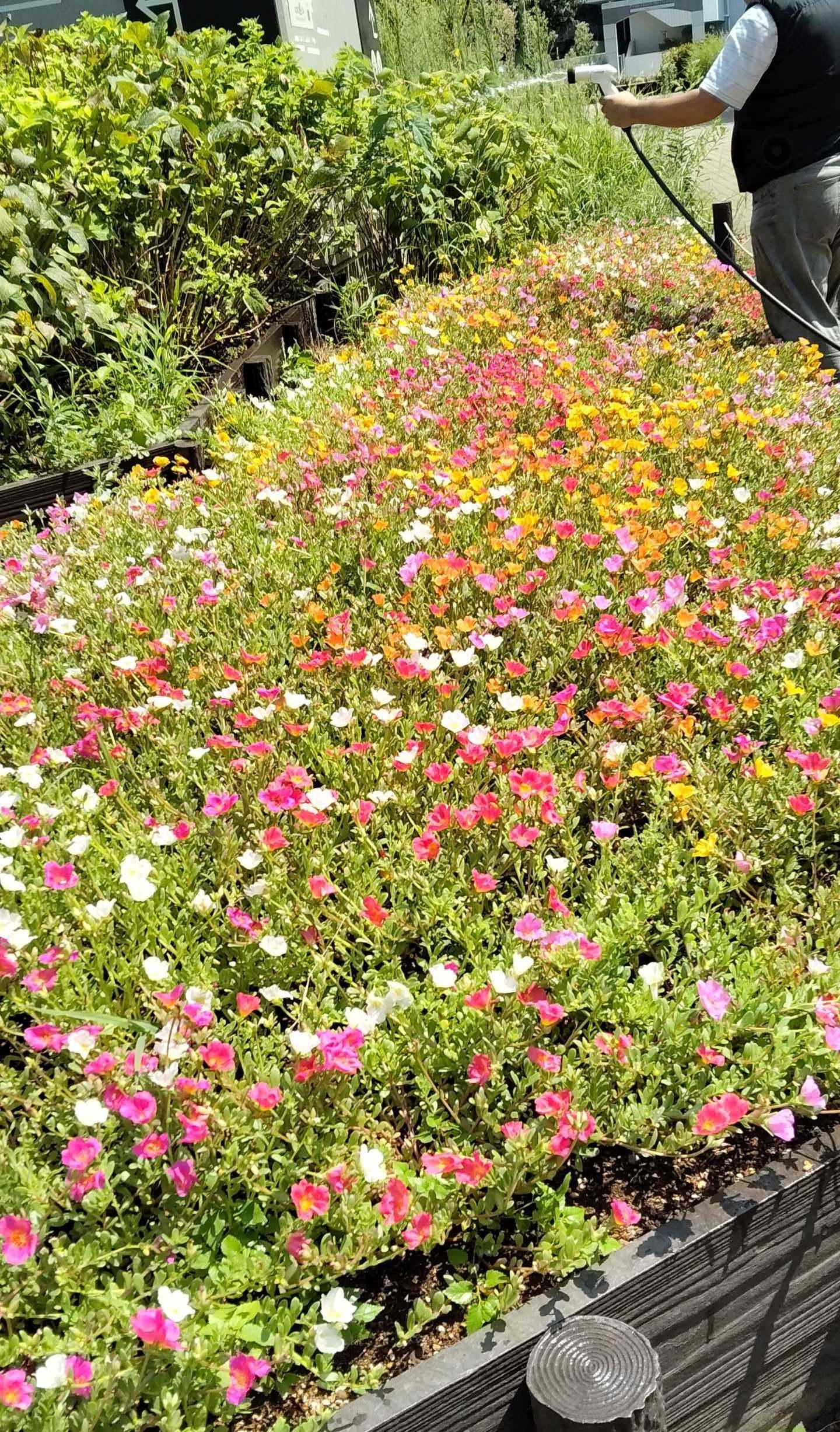 清掃の方がお花に水やりしてたので