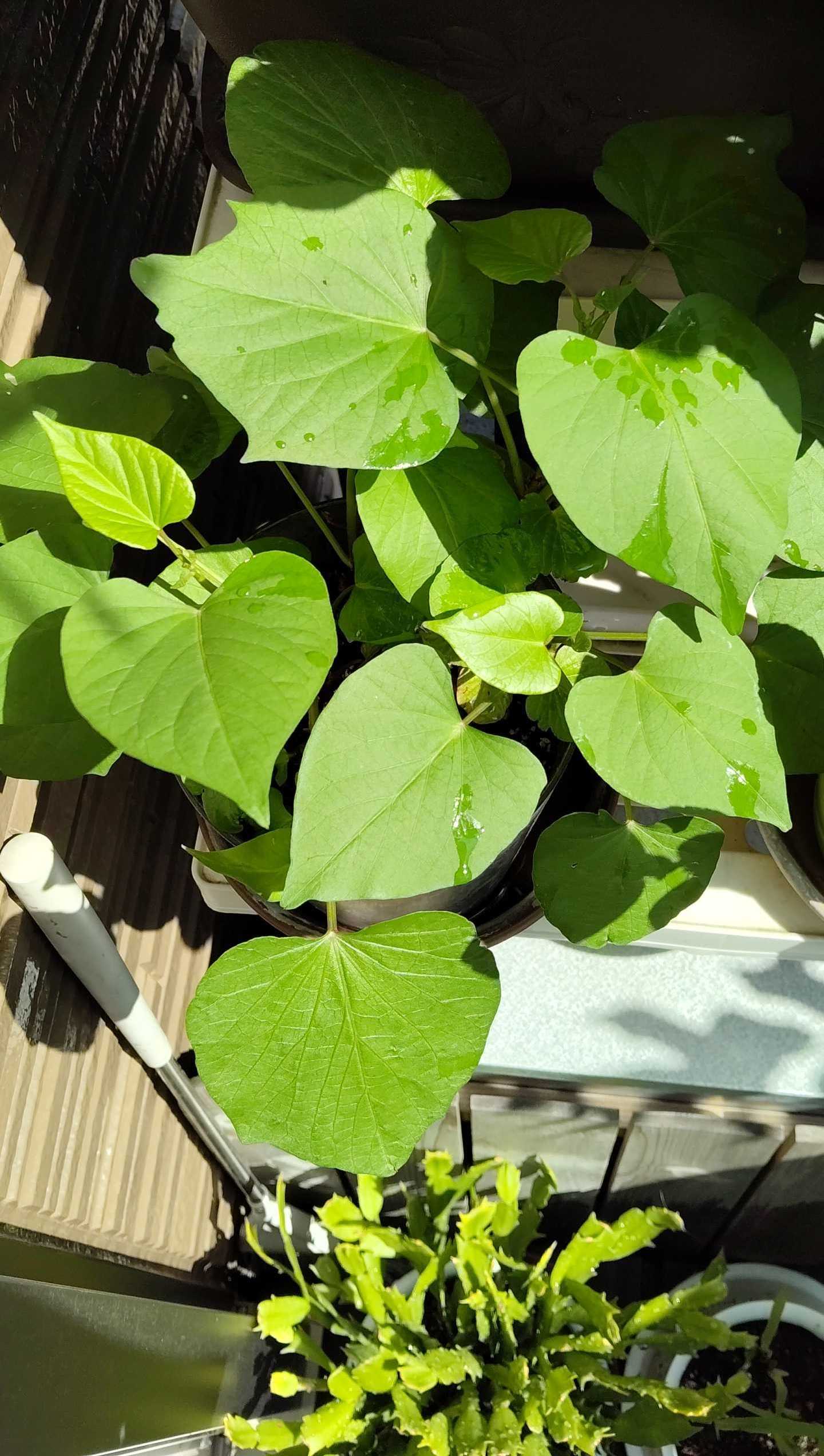 一昨日の夕日です今朝すごい雨の音で5時ころ目が覚めましたシャッター開けたらすごい大雨昨日鉢に植えたサツマイモの芽の受け皿も雨水であふれ出している受け皿から水捨ててやりましたこれが天婦羅にする前のサツマイモの姿です踊っているようですね今日葉もだんだん緑色に変わってきてるみたい先ほどスマホに横浜、神奈川方面台風の土砂警戒警報が発令でて大きな音がビックリしましたうちらは大丈夫そうですが逗子の友達の方は出ているので心配です何も被害出ませんようにと祈るばかりです