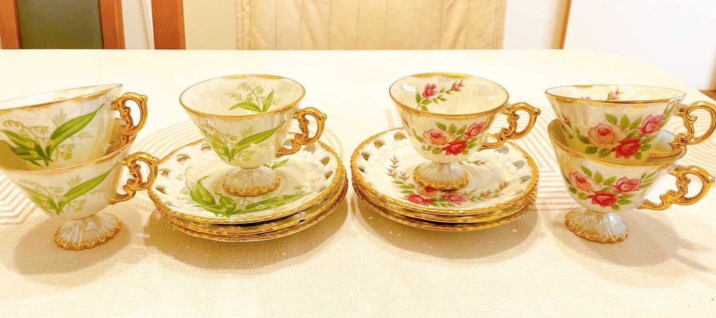 6日千葉から娘家族が主人の面会に来てくれました主人は変わりなく皆の面会喜んでくれた様子です帰りに私宅に寄ってくれました約束していた品大切に持ってきてくれました私の20代 M bankに勤め結婚で退職が決まり外為輸出の女性5人がお祝いとしてくれた大切な思い出の品です此方へ引っ越しの時サイドボードの中には備前焼の陶器や清水焼の抹茶茶碗青磁の香炉、赤のベネチアングラスがなどいろいろ飾ってありましたほとんど旅行で買ったものベネチアングラスは息子にあげましたが・・・ほとんど置いてきましたその中の一つがこのティーカップセットです何が欲しい?と聞かれ銀行の裏にあった珈琲レストランのカップが薔薇と鈴蘭で素敵で昼食後に飲んで疲れを癒していました即このカップが欲しいと言ったら6セット買ってお祝いにいただいた品ですタマムシのように器の表面が光り輝くのも素敵で皿の裏にOHASHI CHINA NAGOYA1932と入っています娘が引っ越し前ほしいといったので挙げたことすっかり忘れていました昨日持って来てくれたんですお母さんが元気なうちは使ってくださいと言って嬉しいです千葉に帰る前お婿さんがアールグレイが飲みたいと・・丁度紅茶切らしていたのですぐ買いに行ってくれ紅茶入れてくれこのカップで久しぶりにいただきました美味しかったです昨日の台風の雨リビングの窓ガラスに打ちガラス流れています昨日の台風大雨でサツマイモの芽」こんなに大きくなりました