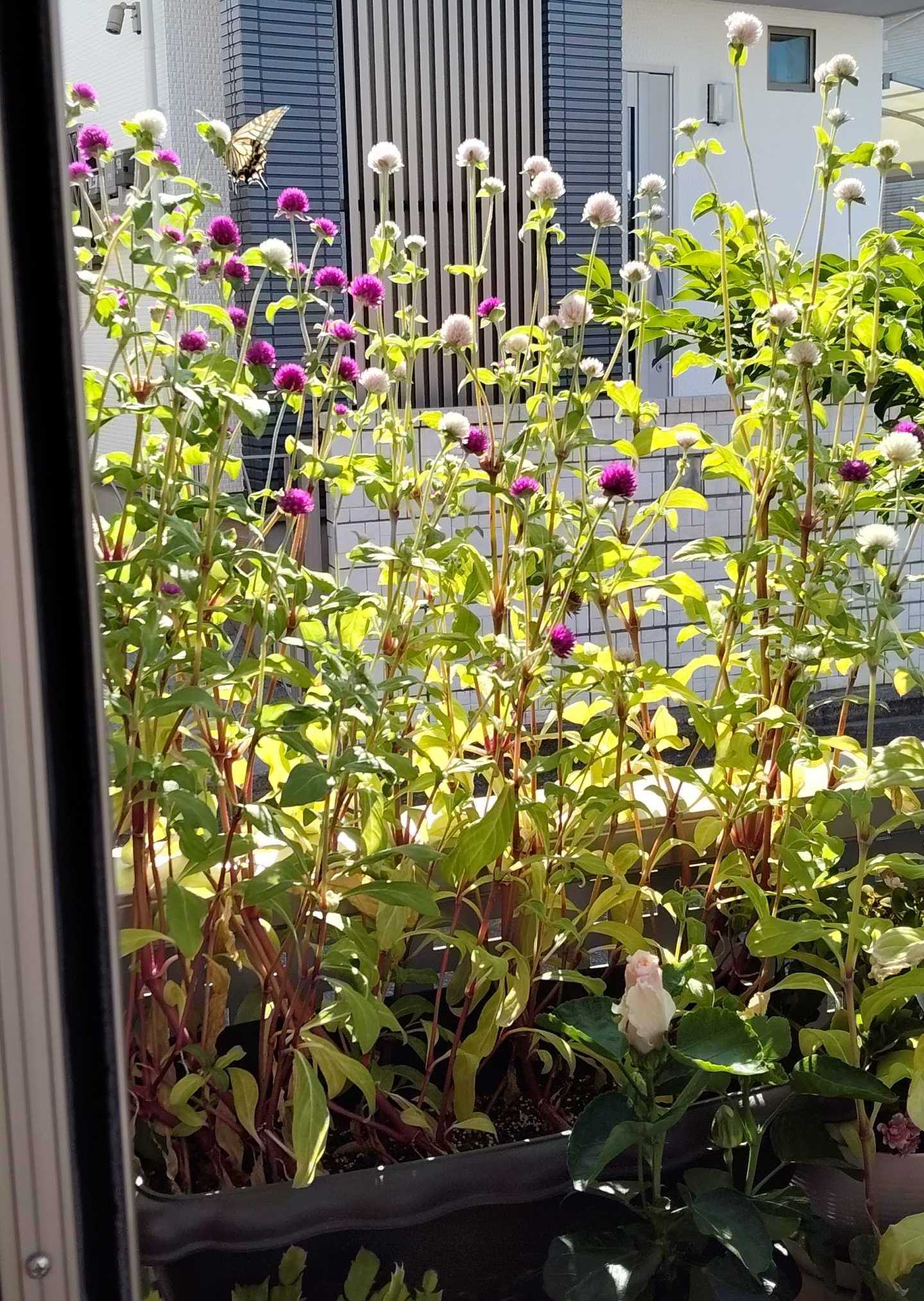 台風も去り青い空が戻ってきました公園の木もようやくツクツクボウシの蝉の声が聞こえますようやく秋の気配が感ぜられて・・ベランダの千日紅の花に2匹のアゲハ蝶が飛び交って・・撮ろうとすると1匹が逃げるのでむずかしい室内のパキラも大きくなって枝切りばかりしていますすっかりこちらの環境にも慣れて昨日娘から犬の顔を付けた小袋もらいました孫のはぁちゃんが来たら来月お誕生日だからお菓子一杯いれてあげようかな!!11月に名古屋に娘と遊びに行こうと思っていますまだ先のことだけど友人にも会って実家の墓参りと考えています