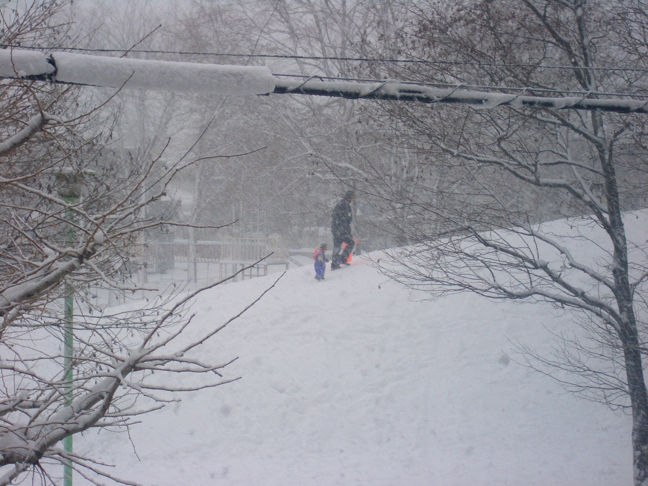 今日もバダバタしていたらあっという間に3時・・・・。外ではソリで遊ぶ子供達の声・・・・外を見ている1・2号。ゴメンネッ。明日、連れて行くからね~。ママは今日もまたまたカニ探し~~。小さく子供達がいるの見えるかな~。みんなこの公園の山でソリ遊びしてます。公園が目の前なので連れて行かない分けにも行かず・・・・。