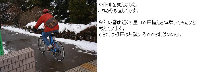 明日は東京でも雪が降るらしい。降りだす前に近所の自転車屋まで行こうかと思っている。片道5kmほど。ちょっと長めの坂があるけれど、いい運動になる。図書館に予約している本が数冊届いているらしい。明日の雪は10時にお願いします。
