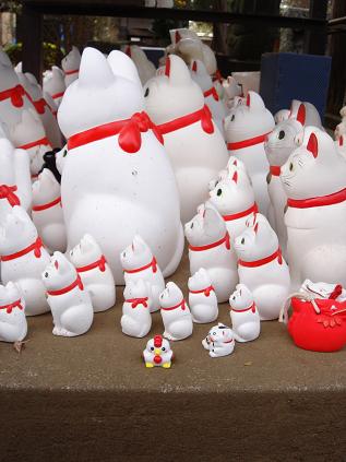 正月休みに続いての連休ですっかりダラダラモードです。復活するにはまだ数日かかるんじゃないかなぁ。。新年から始めたブログですが、今日でやっと2回目の日記(汗)。もっとここをこうしたい~とかやってるとHTMLをいじったり、なかなかはかどらないんだよね。でも、やっぱり書き込みは毎日がんばります!豪徳寺のまねき猫たちです。去年1年活躍して、お役御免で並んでます。なぜかにわとりが・・・