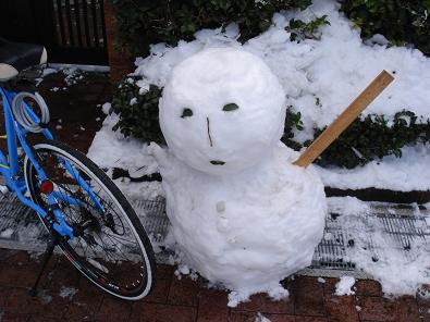 街中雪だるまがたくさん。結構どれも力作でした。歩道はまだまだ凍り付いていたけど、自転車屋までのろのろ行ってきました。日曜の午後にしては空いてたね。自転車なんて乗って帰るものだからね。こんな日は開店休業。ピンクのタイヤが頭から離れない。