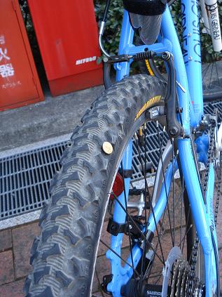 そうそう、年末の買出しでこけたときにリムが歪んじゃったんだよね。買い物袋を前輪に挟んでしまい思いっきり・・・おかげで前輪のブレーキパッドが少しすれるようになりました。今日の画びょう事件といい、買ったばっかりなのに。。リムの調整は自分でもできるって聞いたことあるのですが、詳しいかた教えてください~