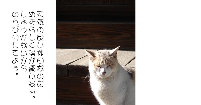 天気最高~ですね。こんな日は河原のサイクリングロードを走るのが一番!その為にもこれからパンク修理始めます。では、また~あ、ここに写ってるおっさん、僕じゃないですから~。ちゃんと毛はふさふさです(笑)