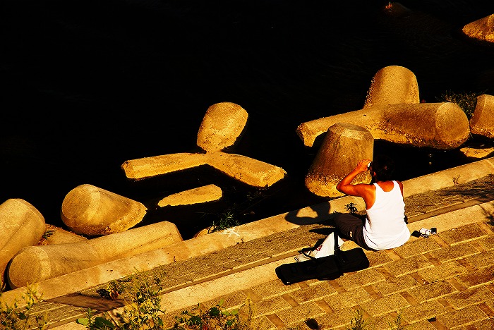 ”あの人ストーカーだよ”先日、小学生の集団にこう言われた。子供は正直だ。住宅街をカメラを片手にキョロキョロしながら歩く40男は実に怪しい。空き巣狙い、下着ドロ、ストーカー・・・見ようによってはどれも当てはまりそうだ。いつ警察に職務質問されてもおかしくないだろう。そんなとこ歩かなきゃいいのに、というところこそ妙に気になるから厄介である。写真を”撮ってみよう”と思い始めたころから常に歯痒く感じていることがある。”なぜ、あと1歩踏み出せないのか!”である。空や橋、自転車や猫は相手の許可なくいくらでも近づける。それらは僕を気にしていないから。でも、人は違う。見ず知らずの人にいきなりカメラを向けられていい気持ちのする人間はいない。だからまずはコミュニケーションを取り、ある程度心を許した後で撮らせてくれないかと頼む。至極当然のこと。でもこれがなかなかできない。実はこの夏の四国旅行の大きなテーマはこの事だった。幸い四国の風土といい出会いに助けられ、思いのほかいい写真を撮らせていただくことができた。僕にはとても貴重な旅だった。これで悩みも解消!と思いきや、日常の生活に戻るとまた元の自分になってしまっているのである。仕事でも、遊びでもそうだけれど突き詰めていこうとすれば最後は自分と向き合う時が来る。最後に聳え立つ大きな山は自分自身、自分の最も弱い部分だ。アラーキーは昔、電車の中で正面に座った人の顔を撮っていたことがあったそうだ。残念だが自分には真似できない。世に”天才”と呼ばれる人には確固たる信念と、強い決意があるのだと思う。小学生に何を言われようが凹んでちゃいけない。建設現場で職人さんに怒鳴られても怯んでちゃいけない。そこで仲良くなってしまえばいいのだ。残念ながらまだまだ聳え立つ山の頂は見えてこない40男なのである。