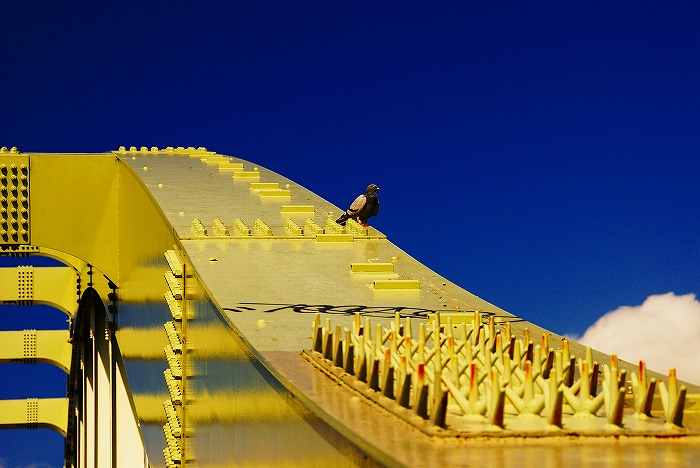 天気があまりにもイイので自転車に乗った。ウエストバッグにカメラを入れて・・・街中の人の波をすいすいとすり抜ける。時々、人につかえることもある。でも全然気にならない。天気が良いから。帰宅まで約3時間半。ところどころでカメラを取り出してはシャッターを切ったので、正味2時間半ぐらいは走ったかな。距離にすると、う~ん35kmとか40kmかな。(僕はいつも1時間15kmで計算してます。あ、ちなみにサイクルメーターは壊れました^^;)実は少し気になることがある。一眼レフを買ってから特にそうなのだけれど、自転車と写真のバランスがなかなかうまく取れないことだ。走りに熱中しているときはそれでよい。画になるようなものを探してのんびり走るのもよい。でも、知らないうちそのどちらでもないような状態で走っていることがあり、人にぶつかりそうになったり、道を踏み外しそうになっていることがある。結構危険なのではないだろうか。自転車で旅をする楽しみを覚えてしまった僕には、これから先ずっと付きまとうジレンマなのかもしれない。。。