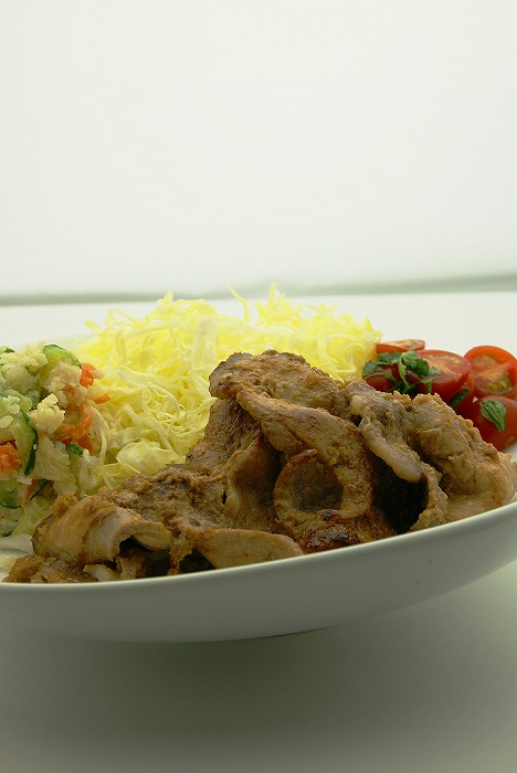 カレーのサラダっていうとみなさんはどういったものを思い浮かべますか?僕はコールスローなんかも好きだけれど、やはりこれを一番に挙げます。もう20年近く前、渋谷西武の「トップス&サクソン」でこれを食べました。夏の暑い日に初めてここに連れて行ってもらった僕は、この目にも涼しいこの一皿に感激しました。よく冷えたトマトにセロリとタマネギのみじん切りを乗せたシンプルなもの。僕はこれにきゅうりや胡麻などを加えています。これに青じそドレッシングをかければも~っ、あなたっ、ヨダレがとまりませんっ(笑)