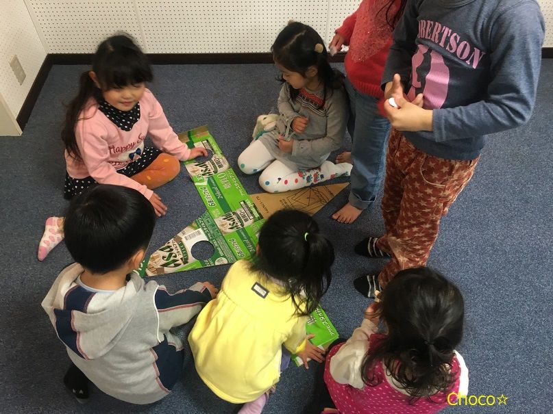 今月は前置詞をテーマに学んでいる親子クラス。