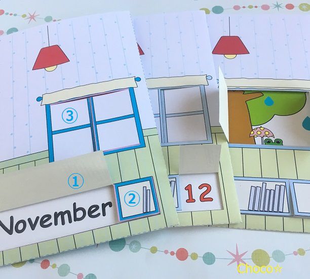 ①を開けると文字、②は数字、③はイラストが見えるようになっています。