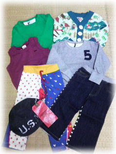 本日近くのセレクトショップで息子の福袋を受け取ってきました~。この福袋、なんとなく希望を言っておくとそれに近いものを入れてくれたり、お客さんの好みに合わせてお店が考えてくれるんです。毎年娘の分をお願いしてきましたが、今年は娘の分はお休みして息子の分にしました。中身はこちら!じゃじゃ~~ん!7点入っていました。BOOとBNTのコーディネート。一応「派手パンツを入れてくださ~い」とお願いしてありました。上左から順に、BNTロンT(グリーン)ブーホームズカーディガン、BNTベスト、BNTスウェット、ブーホームズクレイジーパンツ、BNTデニム×ボーダーパンツ、DDキャップです。BNTはシンプルだけど生地がとっても柔らかくて大好きなのです。しかも大好きな緑のロンTを入れてくれてる~~~!オーダーの派手パンツもバッチリです♪何年も行ってるお店なのでほんと私好みで最高でした!こんな感じでコーデしてみました。 三つ連続ですみませ~ん。上がシンプル、下が派手パンツ、大好きです♪また着せたら着画アップしますね~。そういえば今日JUJUさんから発送のメールが来てたけど、明日福袋届くのかな???楽しみ~~♪