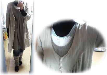 おはようございます~。今日は背中で寝てしまった息子・・・・。布団に寝かせると置きそうなのでそのままPCしてます。最近こんな状態が続いててなかなかチェックできません・・・。SALE始まってるのになあ~~。春物もぼちぼち出始めてますね。春物は色も素材も可愛くて好きです♪■今日のコーデ■寒いので重ね着しまくり~。サニークラウズ・・・オックスワンピースハンドメイド・・・前開きワンピース、ドットタンクトップSM2・・・レースキャミソール、デニム、レッグウォーマーユニクロ・・・ヒートテックサニクラのオックスOPが昨日やっと届いたので(先月分)早速着てみました。欲しかった形だったので色々コーデできそうで楽しみです!色はブラウンが届きました。オックス生地なんでもう少し厚手かと思ったらそうでもなかったので春も全然いけそうです。今日は重ねまくりでコーデしてみましたよ~。重ね具合をアップで撮ってみました。ドットのタンクトップはオリジナルパターンです。お気に入りのタンクから取りました。首の空きの大きいOPがあるとこういう遊びをしたくなっちゃいます♪こういうことできるのも寒い間だけなのでそれはそれで楽しいですね~~。■今日の気になるもの■pritの2010S/S新作が出ましたよ~~~!超可愛いです! 他にもまだまだあるのですが・・・私もあとでチェックしますが、ぱぱっと見て気になったのはピンタックのロングシャツ。胸元のVの開き具合がいい感じです。あとはベスト!色んな色・柄・形で出てますね~。ベストも今年気になるところです。アクセサリーやバッグも可愛い~。やっぱりpritいいですよねえ。