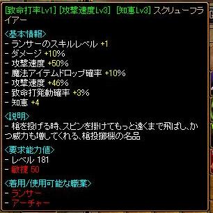 2個前に記事を書いたときの致命打+3% 攻撃速度+46% 知恵+4 スクリューフライアーを貸した相手が、借金を返してからならおれに責任あるから弁償するよ ということでまとまりました。相談乗ってくれた方ありがとう
