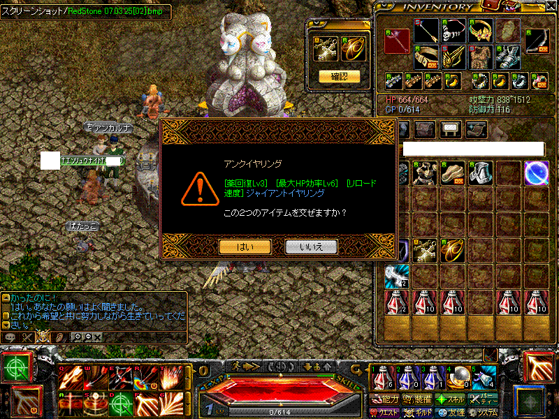 異次元してRS放置に入る時2007年10月30日に、ギルメンに貸していた私の異次元SFがギルメンに貸したまま行方不明ですまじしんどいから見つけてくれ~