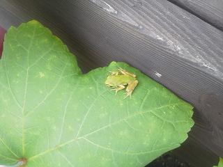 最近雨がおおいのでおくらの葉によくお客様がいます(笑)