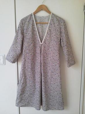 前回のおうちshopのときにオーダーいただいていたVネックのワンピースをやっと仕上げました♪ 以前にチュニックを購入いただいたのですが、それをワンピースにして欲しいとのことでした。生地選びから始めたのでとても喜んでいただけました。家まで届けに行ったのですが、初対面の私にとても気さくに接してくださり、お茶までごちそうになりました。帰りに庭で摘んだという沢山のカモミール、ローズマリー、ユーカリをいただきました。早速玄関へ。 玄関にいい匂いがただよってます