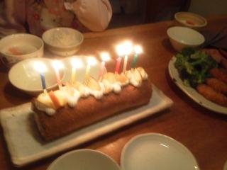 かなりお久しぶりの更新です。。。最近PCを立ち上げるのが億劫で(笑) ネット検索はスマホで済ませちゃうのでなかなかパソコンから遠のいてます。今月はサアヤの誕生日やmacaronの打ち上げ&忘年会、仕事、大掃除etc・・と忙しい日々を送っております。9日でサアヤ8歳の誕生日を迎えました!早いですね~。前日に義母さんからケーキをいただいていたので当日は軽めにロールケーキを家にある材料で作りました♪ 中にはばなな、上には冷蔵庫にあったリンゴを飾りました。サアヤおめでとうそして今年のクリスマスはホワイトクリスマスになりましたね~。一気に寒くなりましたがクリスマスも前日に旦那の実家でケーキを食べたので当日は特に何も用意してなかったのですが、旦那がやっぱりクリスマスはケーキでしょ!というので急きょ近所のショッピングセンターへ行き材料を買ってきました。とはいっても出来上がったスポンジ、いちご、などを買い娘たちに飾り付けしてもらいました。 なかなか楽しそうでしたよ~。 こんな感じに仕上がりました♪ 料理はポテトサラダをツリーにみたてて、唐揚げ、海老フライ、生パスタ(←HBで生地作りからやりました!)とかぼちゃのスープでした。娘たちはボールと竹馬をサンタさんからいただきました(笑)どっちも本人が今はまってるものでした!