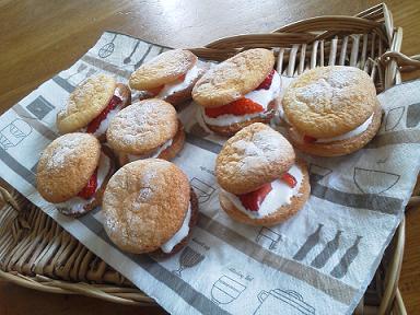 今年はやたらとイチゴをいただきます。大体は練乳をかけて食べていたのですが、少し飽きてきたので久しぶりにお菓子作り♪今月号のESSEに載っていたビスキュイサンドを作りました。 間にはさんだ生クリームがゆるゆる。。。(笑)簡単なのですが美味しくできました久しぶりのヒットです また作ろう♪そして1パックはジャムに。HBにイチゴと砂糖レモン汁を投入してスイッチONするだけ。出来上がりがゆるかったので鍋で少し煮詰めました。HB大活躍です ここ2,3日毎日パンにイチゴジャム付けて食べてます。新鮮なので市販のジャムより美味しく感じます!