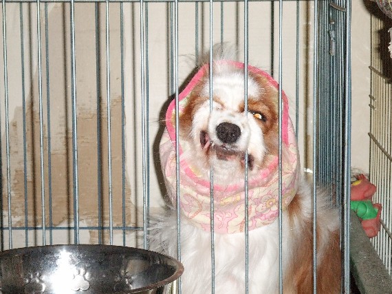今日は、ぐなの膝の手術をしてきました。1・2年前から、遊んでいたりしてると急に膝の皿が外れてしまう事があり急を要すわけじゃないけど、いずれ手術は、必要になると言う事で。半年くらい前辺りから、外れる回数も多くなり、それが頻繁になれば今度皿の周りの筋を切ってしまったり、足が変形してきたりと厄介になってくると。。。ぐなままも8月にお産があるので、それからだと中々手が周らなくなってくるとぐなも今の所体調も良い事だし、早めに処置をしてあげましょうと言う事で本日の手術が決まりました。夕方、病院から連絡が入り麻酔も切れてきたので、ある程度は、解る様になりましたと連絡が入り。。早速病院へ行きました。緊急を要する手術では、ない事と解っていても。。。ぐなの様子。。。ぼーっとしていた。。まだ麻酔が完全に覚めてないんだろう「ぐな」と声をかけてみた。。初めは、ボーっとしていて何が何だかみたいな感じで目の焦点があわず。。見ようとしてるのに必死だった。。。痛々しかったな。。。しばらくして「ぐな」と又声をかけた段々解ってきたのかちゅらさんの方をじーーーっと見て小さな声でキューキューと泣いてた痛いんだろうね。。。きっとがんばれ!明日になればもっと良くなるからね!!ファイトぐな!!今回足だけじゃなく。。派の歯石もついでに見てもらったが。。歯周病が酷かったらしい。。。奥歯一本抜かれました><パグは、顔が潰れているせいか、口の中もちゅら・えるもと比べると複雑です。ちゅらエルモは、歯石は、付いていないので大丈夫だけど。。でも気をつけねば!口の中が赤く腫れていたので硬い物を食べるにもぐなは、飲み込んでしまっていてそれも悪循環を起こしていたんだね。。歯磨きしなきゃね!痛い思いをさせてごめんね。。ぐな。。早く良くなろうね^^