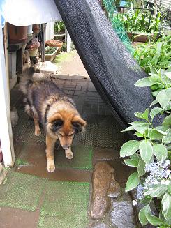 「まったく、バカふ~ 」と火を噴いて怒っている隣りの奥さんを庭に呼び、事情を説明しました。そして謝まりました。我家の茶ノ助は番犬を勝手に引退したみたいで・・・・ごめんなさい!地域の安全はふ~ちゃんにお任せしますので、宜しくお願いします。って!それから帰ってくるな!なんて言わないで、早く戻してあげて下さ~い。 迷子のワンコは鑑札を付けていず、狂犬病の接種札を付けています。ですが擦れて番号が消えています。保健所に届けが出ていないか電話をしました。保健所には「保護日時・犬種・大きさ・色・耳が起きているか寝ているか・首輪の色」を聞かれました。届けが出ていて、暫くして飼い主さんが迎えに来ました。めでたしめでたしです。 でも・・・・・もし有っては欲しくないけど、飼い主さんが引き取りに来てくれなかったら、我家には14歳と15歳のお爺さん犬2匹になってしまう・・・・・・なんて考えました。捕まえる時に、でも放って置けなかったんです。 その迷子のお爺さんの写真です。本犬の意思を確認していないので・・・こんな事に! 我家も茶ノ助の鎖が切れたりして、何度かご近所の方々のお世話になっています。飼い主さんに連れられて嬉しそうに帰って行きホッとしました。 今まで15年間庭の雨戸は1枚分開けていました。夜でも・・・家の中をいつも見ている子ですから、でも寝る前に雨戸を締める事にしました。番犬は出来なくなりましたから・・・年をとったので仕方ありません。朝までぐっすり寝ています。