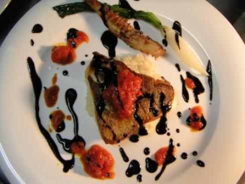 黒いソースと言うと、イカ墨?それとも煮詰めたバルサミコ? これは今日思いついた新しいソースで、“黒ゴマ、バルサミコソース”です!!