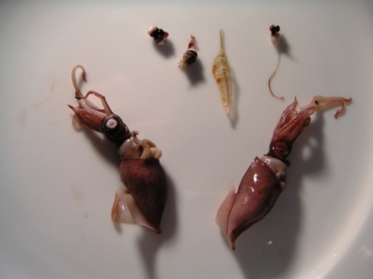 ホタルイカの旬が来た。小さなイカなのでイカの子供と思い込んでいる人がたまにいるが、この小さな体で立派な大人。旬の今は産卵行動のために普段暮らしている深海から上がってくるのだ。 一般的には、酢味噌で食べたりするのだがトマトソースで煮込むと美味しいパスタソースになるし、ガーリックオイルで炒めるだけでも美味しいつまみになる。 ただし、、、皆さん普通に丸ごと食べてやしませんか? ホタルイカだって小さいとはいえ目玉やくちばし、背中の軟骨があって、それらを取り除かずに食べると目玉が歯に挟まったりして食感が悪い。私に言わせれば、掃除してないホタルイカなんてとても料理になんて使えないのだ。面倒くさいけどためしにやってみて食べてみて欲しい。驚くほど食感が違うのが分かるはず。 左が下処理なし、右は掃除したあと目玉が二つ、軟骨、くちばしをとったところ。