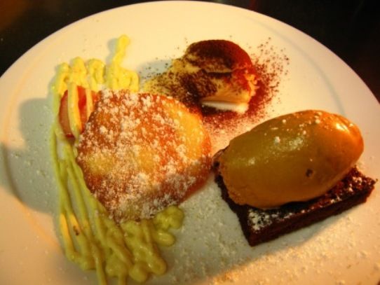 デザートは、ヴァローナ社のアラグアニというショコラのフォンダン(半生チョコケーキ)カカオ分70%以上でビターな中にレーズンや栗のニュアンスなどが感じられるベネズエラ産のショコラ。