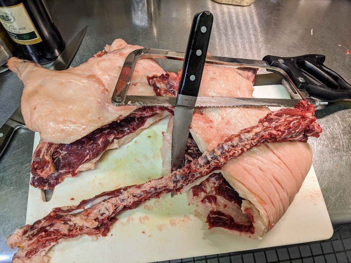 去年の12月の初めころに手に入れました。まずは背骨を外して半身にしてたたんで自宅冷凍庫でストック。先週出番がやってきました。11日と15日のワイン会に半身ずつ使いました。その15日のソムリエのKさんが主宰するワイン会の話です。