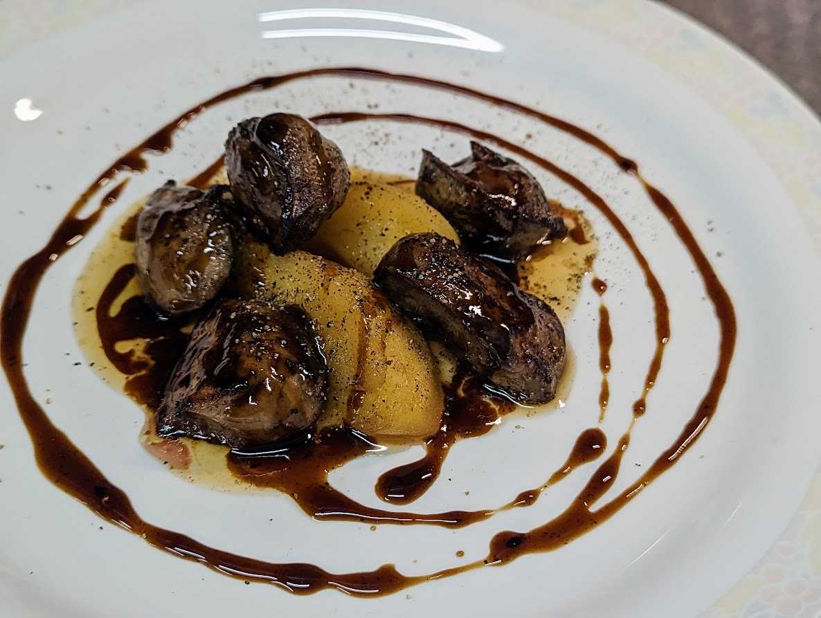 一塩レバーのソテー、焼きリンゴ添えです。これは温前菜。