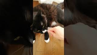 # 2390ダイソーの猫おもちゃで遊ぶくーちゃん。一応、狙って飛びついたりしてくれてるけどそこまで本腰を入れて遊んでくれてない。(こっちが遊んでもらっているということだな)そんでもう、休憩に入るんだって。
