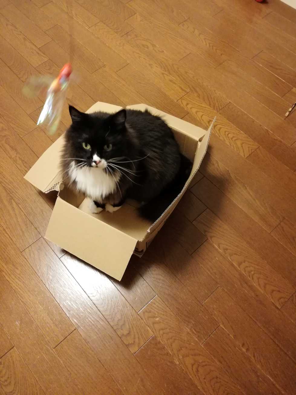 # 3427 (10/14)箱に入っているくーちゃん。頭上でびょんびょんのおもちゃを振られている。大人が相手をしてくれず退屈だから、箱に入ってもう寝ようかなーと思っていたのに今さら遊びに誘われている。そりゃまあ頭上で何か飛んでるとつい反応してしまうわな。いや、くーちゃんは寝るのだ。と、頑張って無視しながら寝る体勢になるのだけど、やっぱり本能には抗えずついつい手を出したくなるくーちゃん。寝ようかなと思っていたのは撤回。やる気を出して、難しい角度からエモノを狙うくーちゃん。こうやって、寝るだけでなく遊びにも使うから箱は知らないうちに破れてくる。びょんびょんもだいぶくたびれているのだった。= = = = = = = = = =さてー、2年前の3歳くーちゃん。おかえり1106日目。 → 尻が上がる曲線 カーブに収まるくーちゃん。2023年11月4日の写真。= = = = = = = = = =おっきいくーちゃん。今日も、2005年。2005年11月4日の写真。カーテンの中にいるくつした。おしっこ中のくつした。- - - - - - - - - -ランキングサイト参加中 LINEスタンプ Tシャツとか 買ったものと欲しいもの
