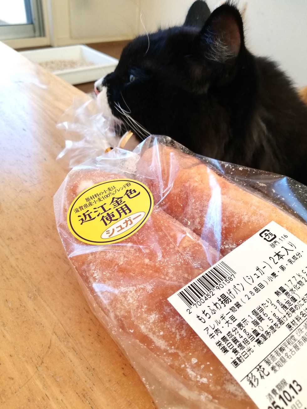 # 3426 (10/13)平和堂では揚げパンも買ってきた。これも滋賀県産の「近江金色」という小麦粉を使っているというもの。「近江金色」は近江八幡のイカリファームという農家(農業法人)の生産らしい。そんなことはさておき、パンの入った袋の口をパリパリ噛んでみるくーちゃん。これは何かいな?と、調査中。口にくっついてくる!ペッペッ。何の味もしなかった。おやつではないのか。においもしてこない。うーん。おやつタイムだと思って、参加しに来たのに。パンの調査に飽きてぼんやりするくーちゃん。とりあえず座っておやつタイムが始まるかもしれないと待機する。袋を開けたら待ってましたとばかりに立ち上がった。でも揚げパンにはやっぱり興味がわかなかったのでくーちゃんはポリポリをもらった。食べたあとなぜか棚に収まっていた。あら、めずらしいですね。そんなとこに。空いていたので何となく入ってみた。落ち着くというほどの狭さではないしゴロンとするほどの広さもないけどとりあえずちょっとここで過ごしてみるくーちゃん。夜はキャットホイール。肉球ポインターめがけて走るくーちゃん。= = = = = = = = = =さてー、2年前の3歳くーちゃん。おかえり1105日目。 → また天竜川ドライブ あご乗せくーちゃん。 → ガタガタ河原ばしり 揺られながら寝るくーちゃん。 → 河原に立つ、しかも二足で。 風に吹かれて立つくーちゃん。 → 風が強いので、腕の穴もぐり もぐりたがりくーちゃん。 → 小脇に抱えられてみる ぷらんと持たれるくーちゃん。 → 記念撮影したらもういいでしょ。 早く車に戻りたいくーちゃん。 → 車の外あっちこっちチェック 外を見つめるくーちゃん。 → 草だんご揚げ団子と夜の道の駅 暗がりでそわそわくーちゃん。2023年11月3日の写真。= = = = = = = = = =おっきいくーちゃん。今日は、2005年。2005年11月3日の写真。ゆでピーナツの殻が気になるくつした。1コ持って下りたくつした。食べるものではなかった。どうでもよくなったくつした。もう1個チャレンジするくつした。すき間をのぞくくつした。- - - - - - - - - -ランキングサイト参加中 LINEスタンプ Tシャツとか 買ったものと欲しいもの