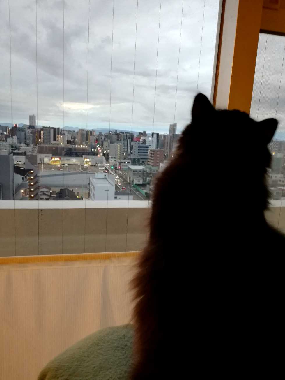 # 3440 (10/29)午後、ホイールに乗ってみたけど走らないくーちゃんとホイール遊び。ホイールの外で指チラチラ。飛ぶまでが長い。飛んだあとも次までがまた長い!おだやかで静かな午後はくーちゃんもゆったり。テンションもあまり上がらない。少し歩いてみたけど、走る気分じゃないな…とすぐ降りた。そのあとはマットレスでくつろぎタイム。ここのところ夕方になるとだいぶひんやりしてくる。何だか寒そうにしていたくーちゃんに、そうだそうだ、これ出そう!と、とんかつクッションを持ってきた。今年もいよいよとんかつシーズン。やった!これだ。と、うれしそうにふかふかあったかとんかつをもみ倒すくーちゃん。そして、どすん。満足気に座った。とんかつの上でなめなめを始めたくーちゃん。なめなめが終わったらとんかつの上にきちんと乗っかってぬくぬく寝ていた。 + + +夕方の空夕日を背景にみんなシルエット。ちょうどビルの後ろ。雲が色んな階調。下の方は真っ赤。もうすぐ沈み切る。= = = = = = = = = =さてー、2年前の3歳くーちゃん。おかえり1121日目。 → 朝のさかな狩り 大きな魚をつかまえるくーちゃん。 → 京都帰りのうなぎ くーちゃんもうなぎ食べた。2023年11月19日の写真。= = = = = = = = = =おっきいくーちゃん。今日も、2008年。2008年11月19日の写真。 → 日の出すりすり 頬ずりされているくつした。されるがままのくつした。朝日を見つめるくつした。なぜか指を嗅がされるくつした。- - - - - - - - - -ランキングサイト参加中 LINEスタンプ Tシャツとか 買ったものと欲しいもの
